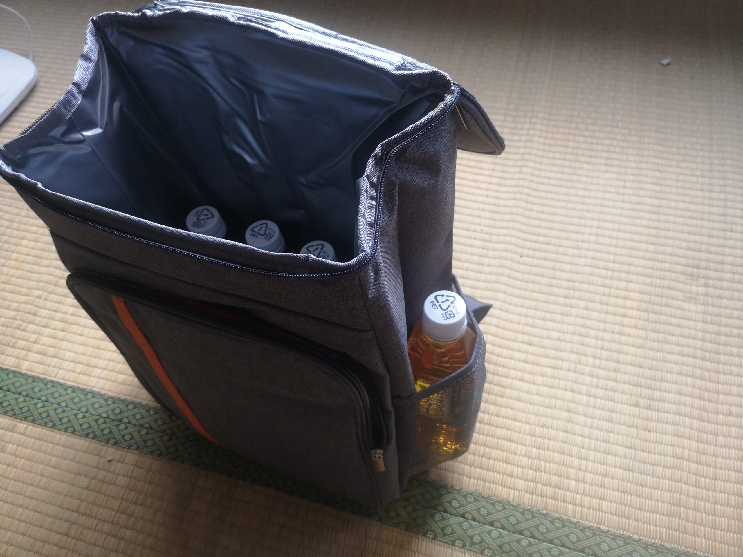 保冷剤とペットボトルを一緒に入れて、気温15〜18度の昼間に3時間ほど持ち歩いたところ、飲み物はほぼ“冷えたまま”の温度を維持していました。