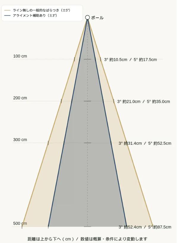 直線のラインがあることで、狙いたい方向が明確になり、迷いが消えます。